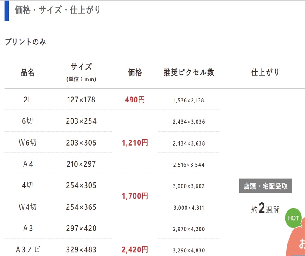 『キタムラの推奨サイズ一覧』 デジカメプリント たいくつな午後さんのクチコミ掲示板画像1/1