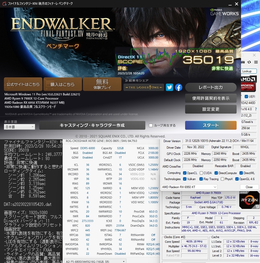 FF14暁月 7900X + 6950XT-Pure DDR5-6000CL36(tRFC 820) with Wraith Prism F5-6800