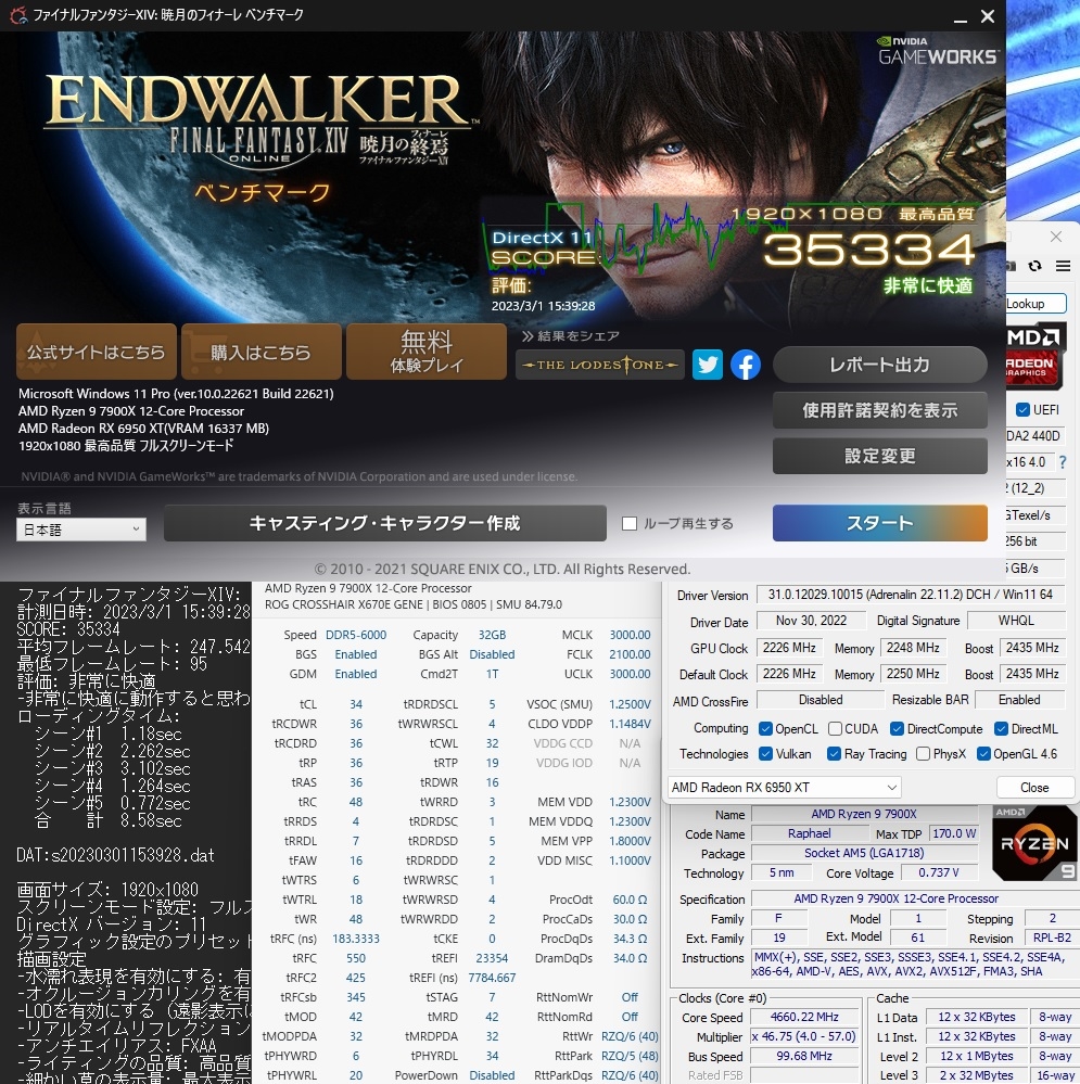 FF14暁月 7900X + 6950XT-Pure DDR5-6000CL34(tRFC 550) with Wraith Prism