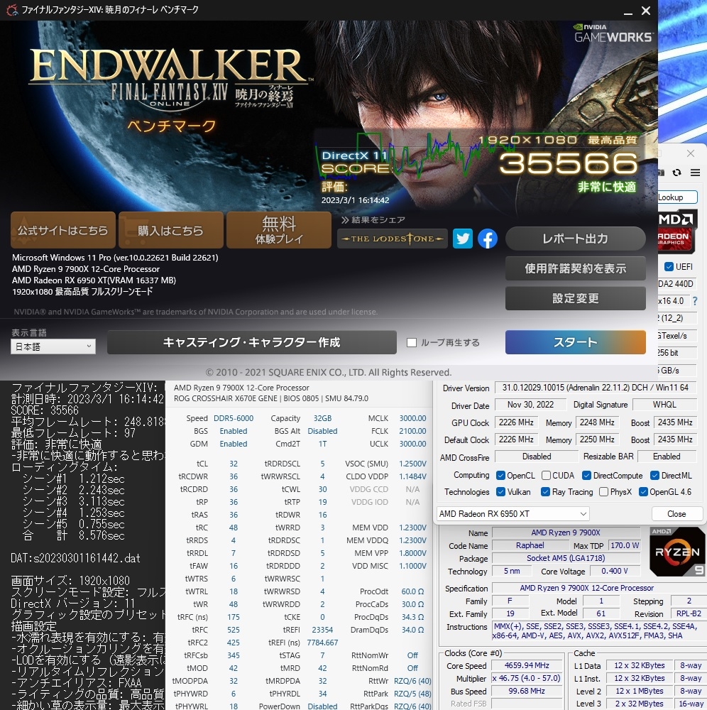 FF14暁月 7900X + 6950XT-Pure DDR5-6000CL32(tRFC 525) with Wraith Prism