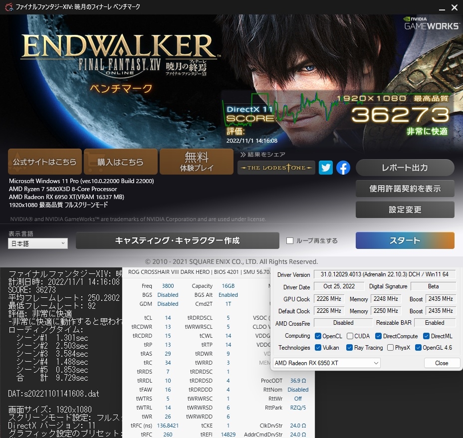 FF14暁月 5800X3D(3800CL14 tRFC260 FSB100.01) + RX6950XT-Pure 18℃