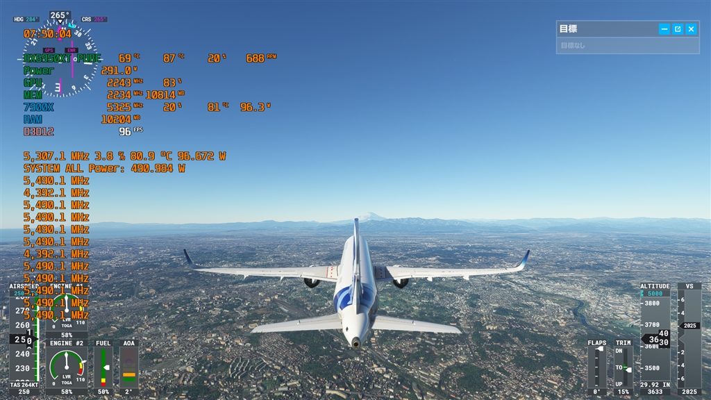 MSFS 1080pウルトラ+α 7900X + 6950XT-Pure DDR5-6000CL32 オートパイロット