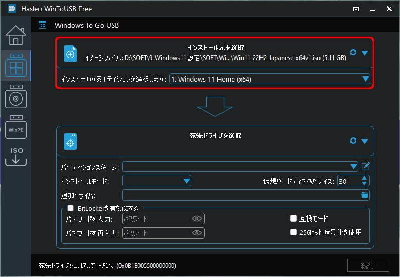 宛先ドライブを選択