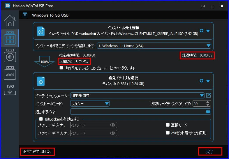 正常に終了しました
