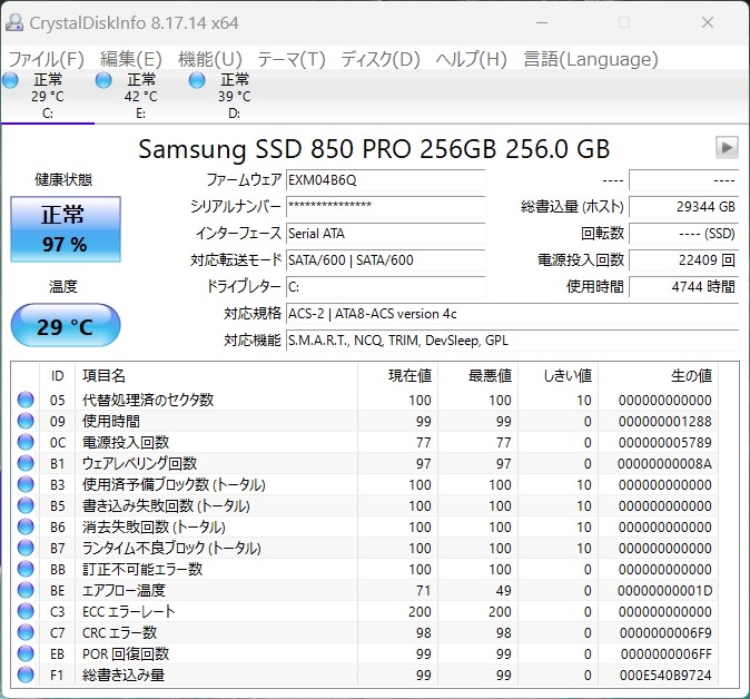 『850PRO 寿命=97%』 ユーティリティソフトすべて 夏のひかりさんのクチコミ掲示板画像1/1