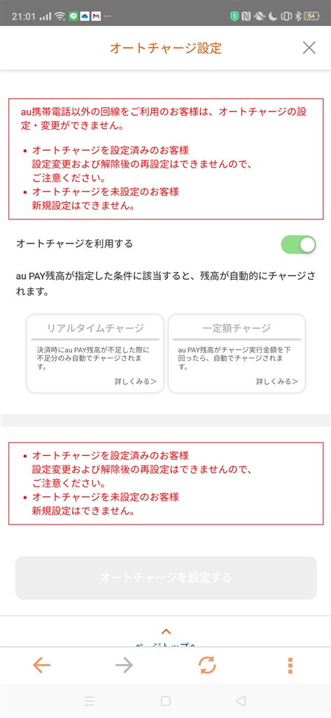オートチャージ不可