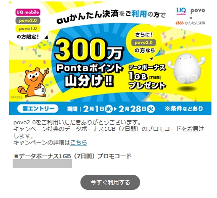 1GB(7日間)のプロモコードが届きました!!
