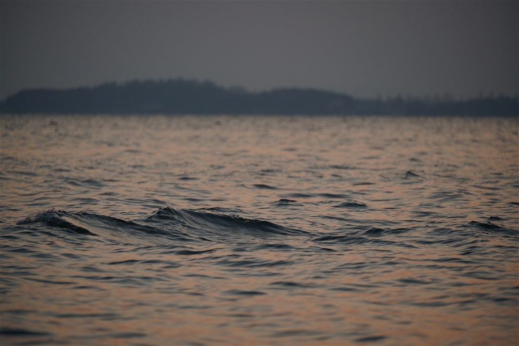 湖岸では微風ですが、湖上では波がしっかり立つところがあります