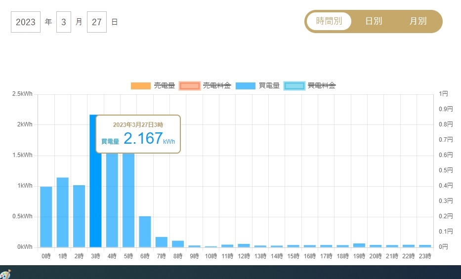 夜間も買電日中夜間は買電なし