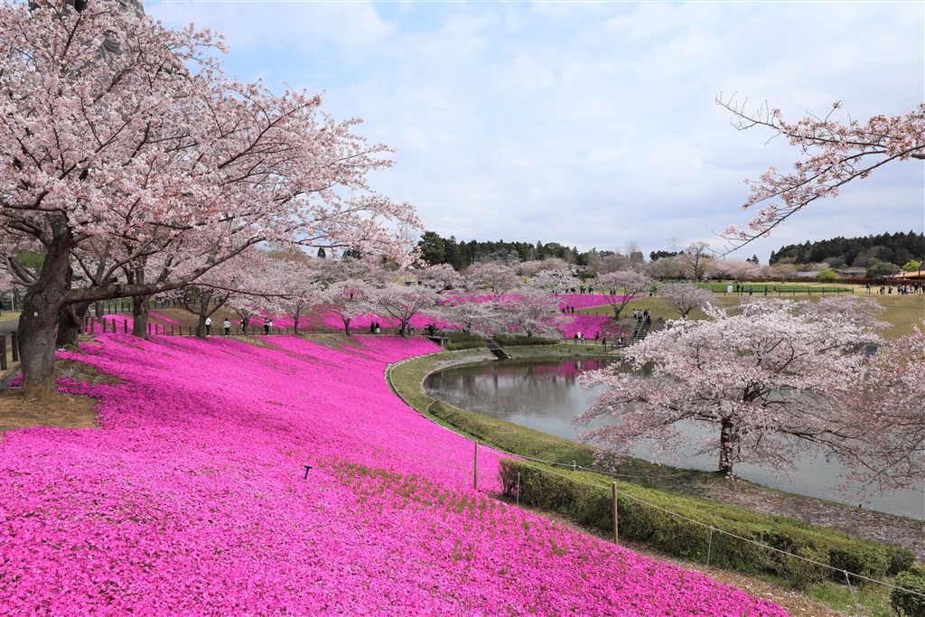 芝桜と桜の共演