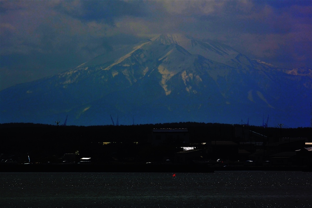 十三湊より岩木山 黄砂で霞んで見えないのを強制浮き出し