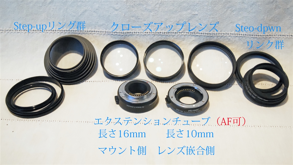 クローズアップレンズとエクステンションチューブ。テップアップ&ダウンリング群