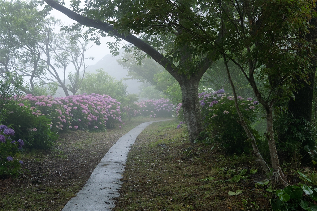 2023年6月 霧雨のなかのアジサイ−8