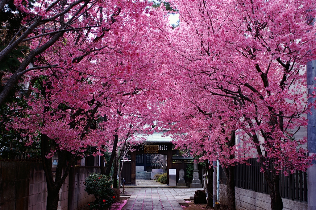 近所のお寺で おかめ桜