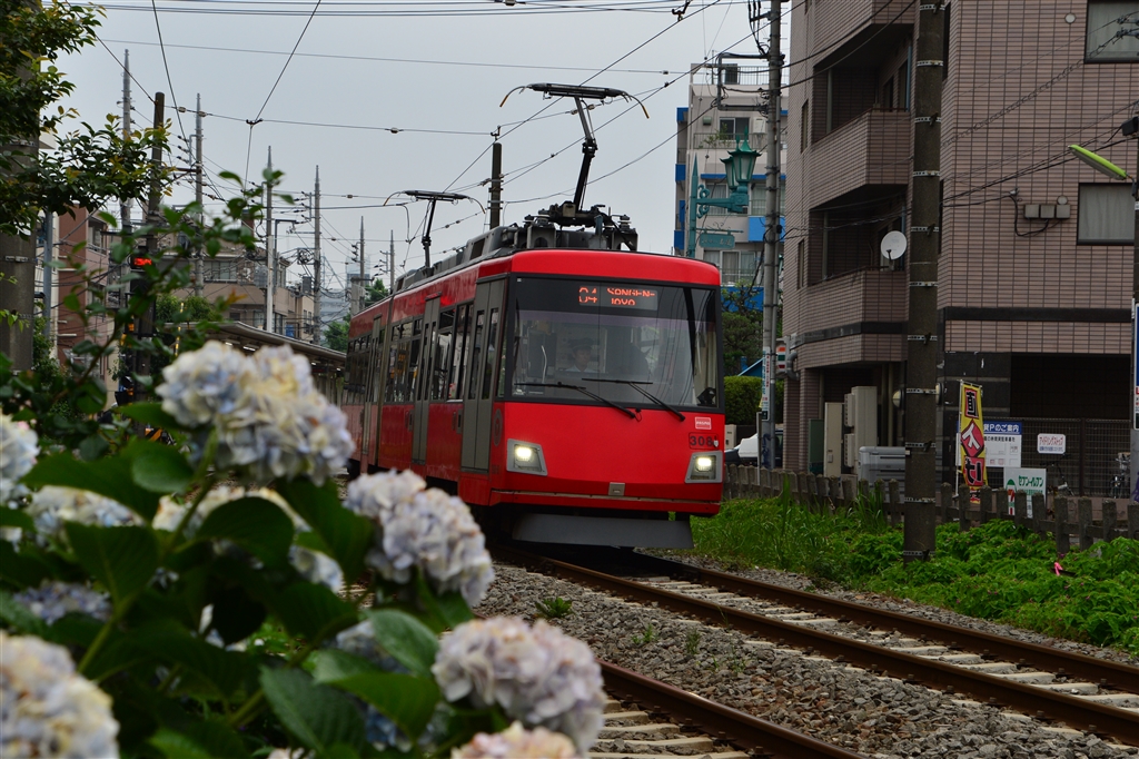世田谷線と紫陽花 AF-S NIKKOR 28-300mm f/3.5-5.6G ED VR