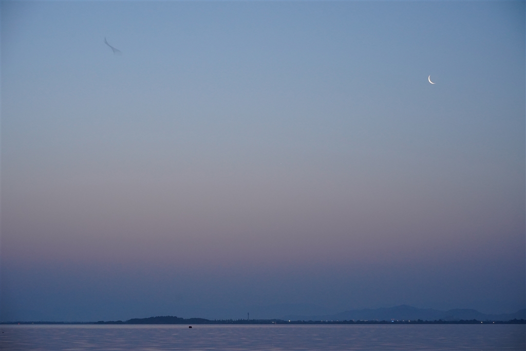 今朝の月 左上の飛翔体はコウモリ