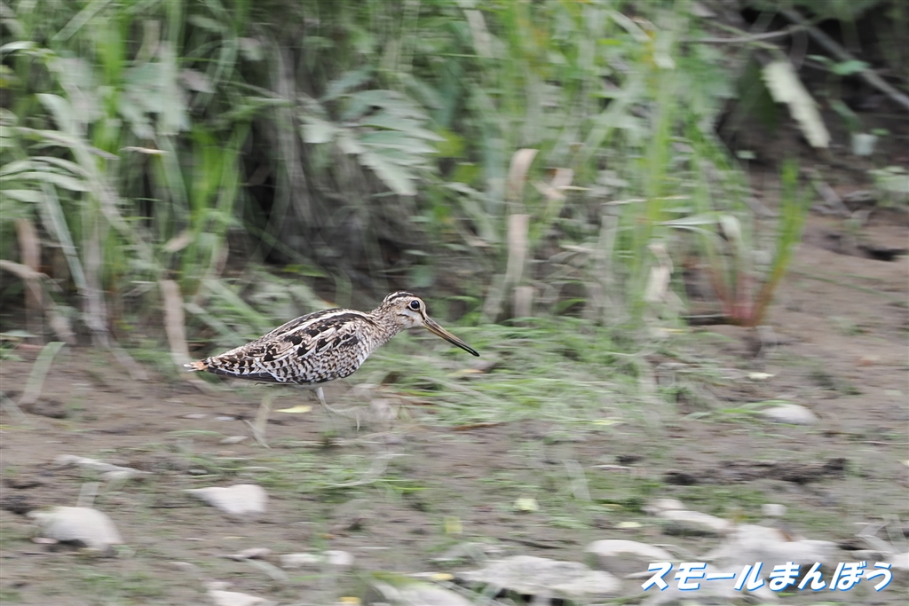 走るオオジシギを流し撮り(偶然撮れていた)