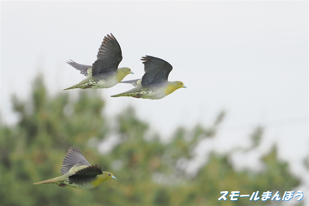 アオバトが飛んで行く〜