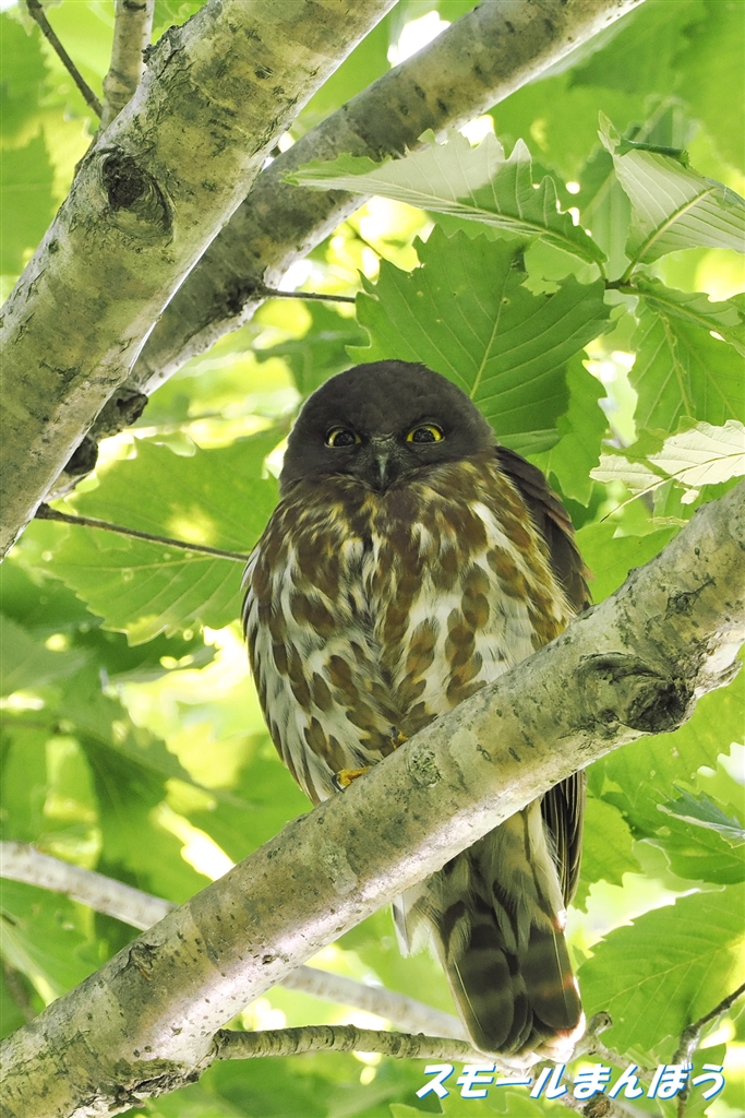 ジ〜ッと見つめるアオバズクのオス