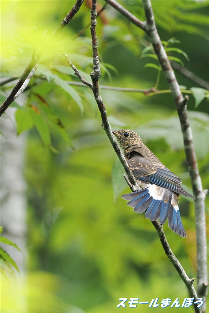 ストレッチ中のオオルリ幼鳥