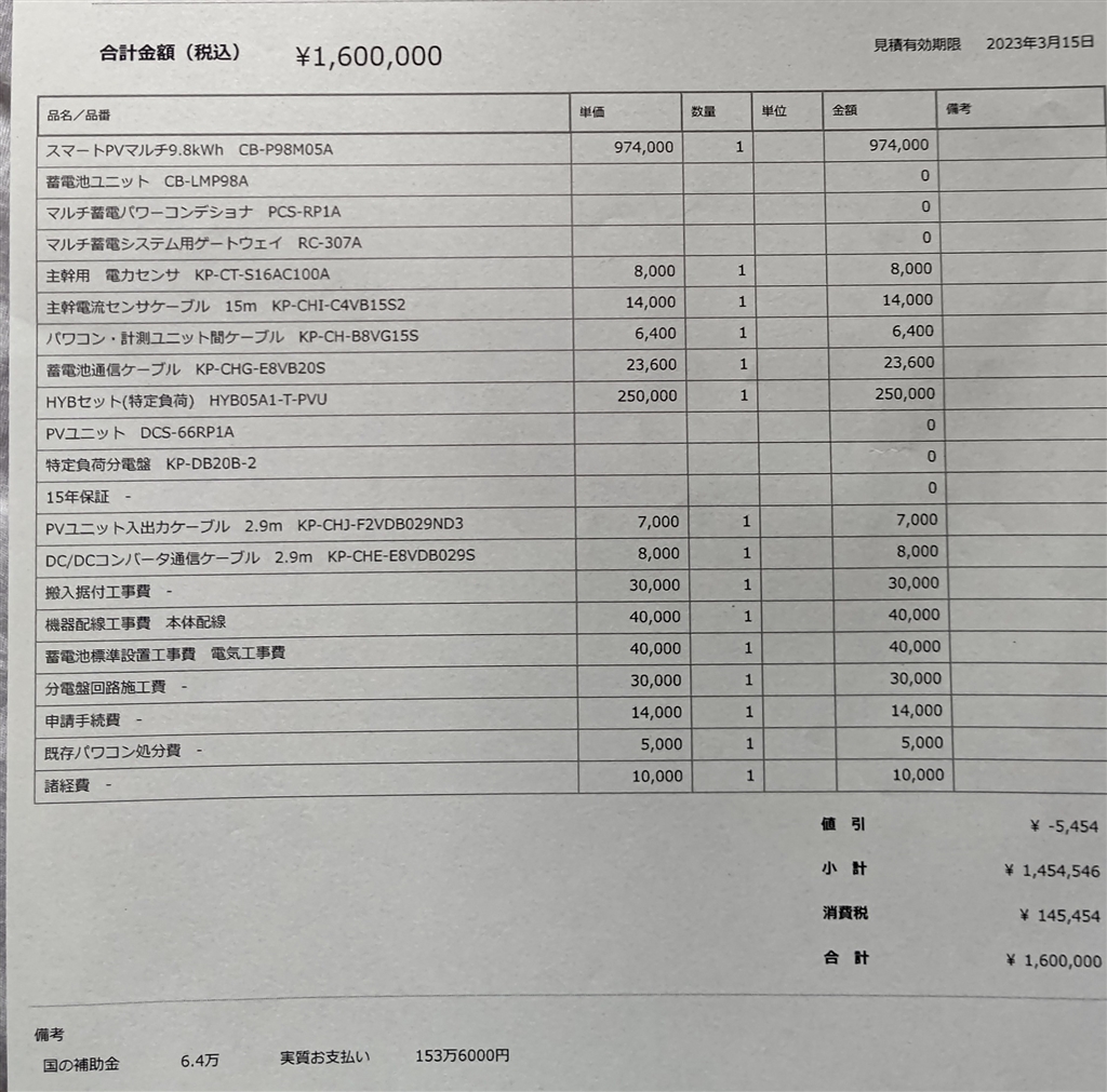 9.8kWhの見積り