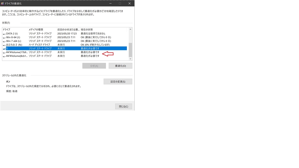 システムツール ドライブの最適化デハ謎の