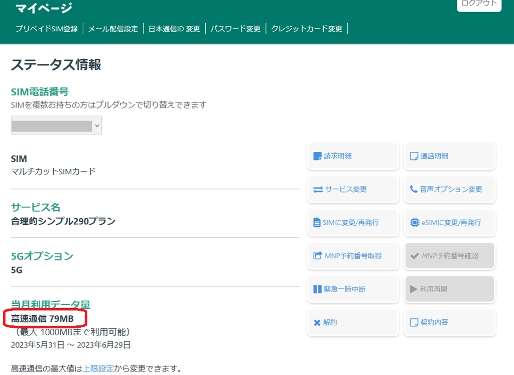 日本通信6月データ消費量