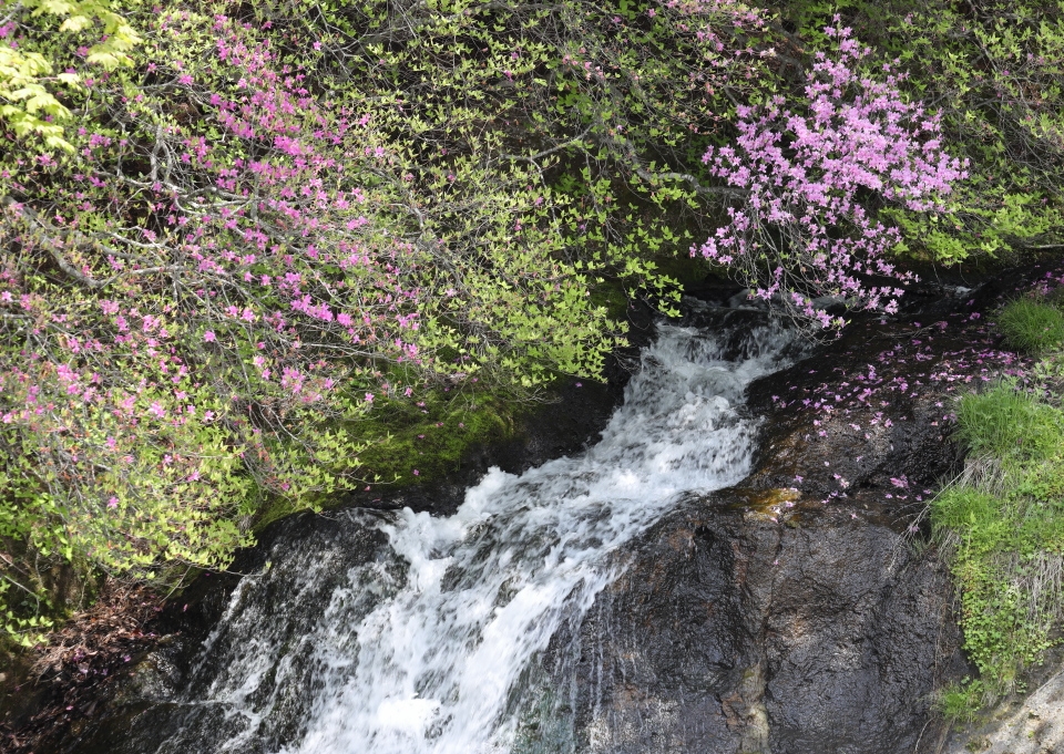右上の花がトウゴクミツバツツジ 来るのがやや遅かった!、今年は開花が早い。