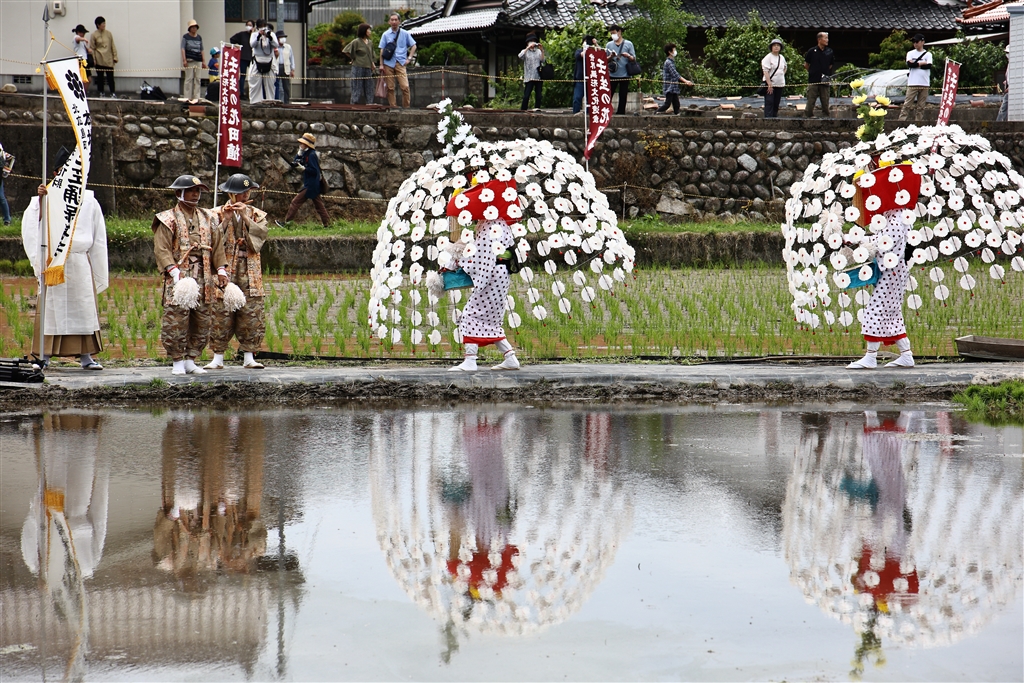 花笠踊りは水田にも映っていました