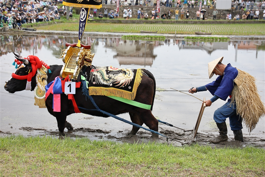 先頭を行くのが主牛(おもうじ)で重要な役目で名誉なことです
