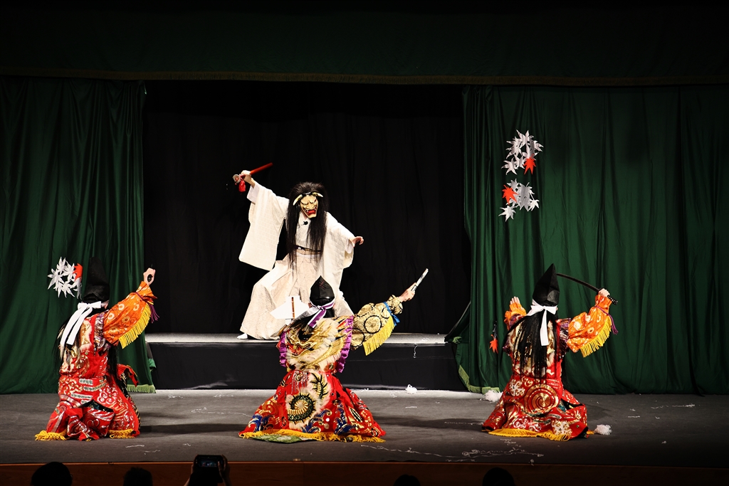 妖術の瀧夜叉姫が陰陽術の大宅中将光圀たちと激しい戦いをする