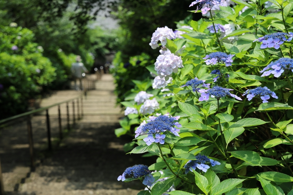 1000段の石段を登った帰りの下り坂で晴れ間が。