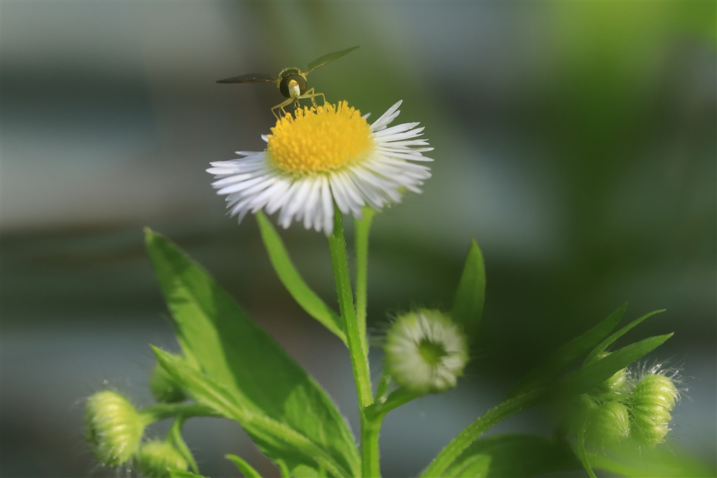 ホソヒラタアブとヒメジョオン(姫女苑)