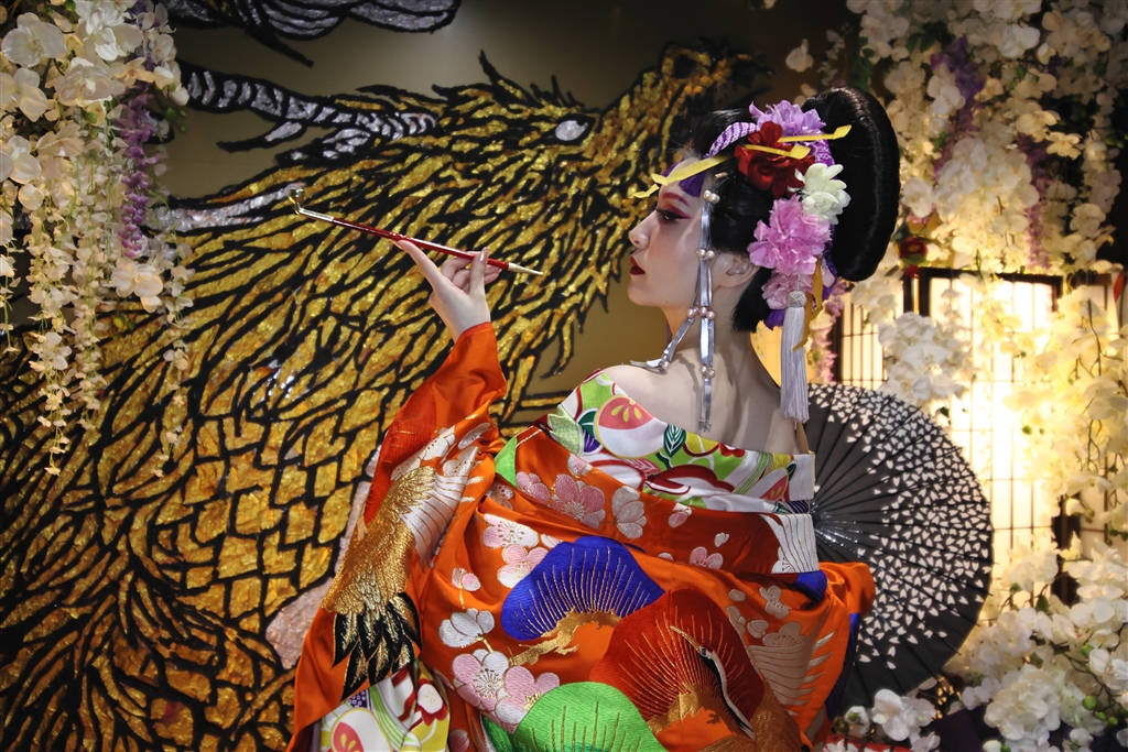 キセルを持つ花魁