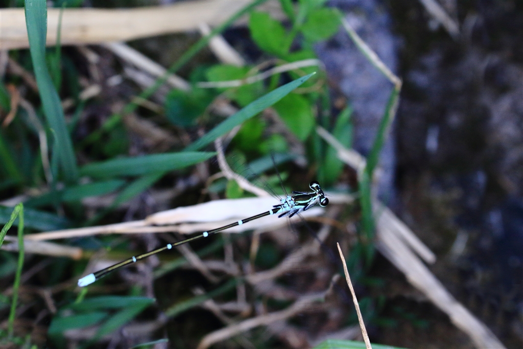 イトトンボは小さい割にチョロチョロと動き回るので撮りにくい