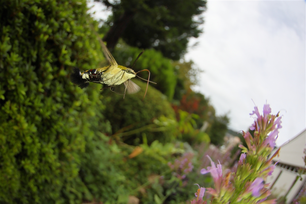 オオスカシバはホウジャクよりも大きくそれほどすばしっこくない