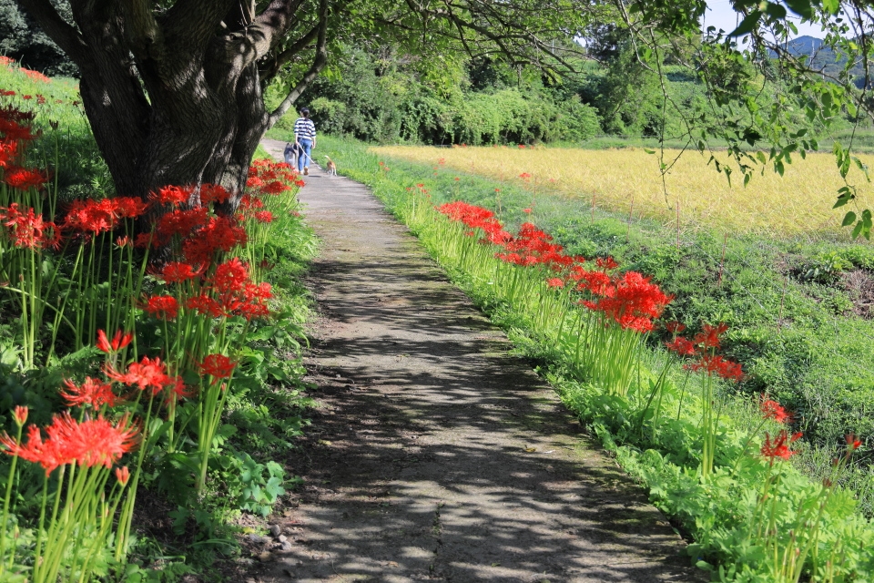 公園は遊歩道が整備され犬も散歩している