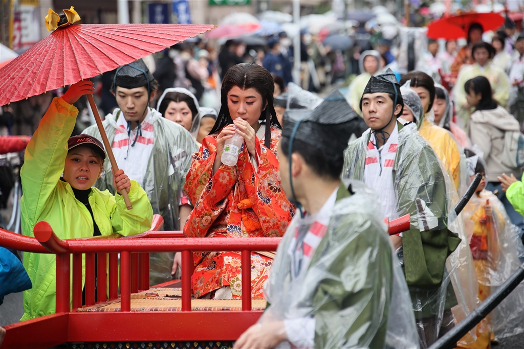 行列の途中で水分補給