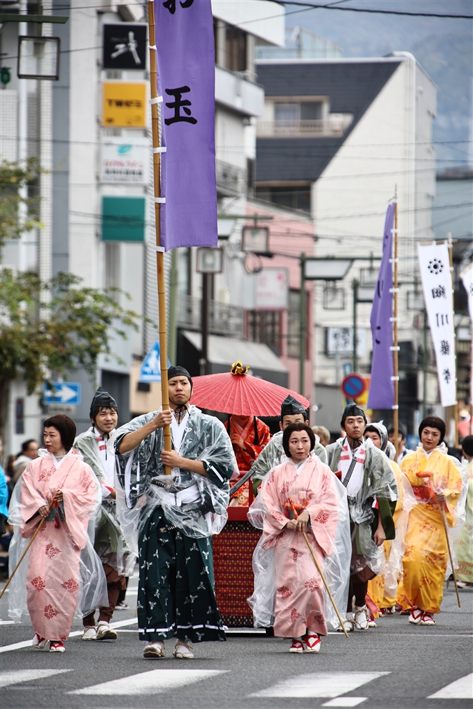 細川玉の一行が長岡京を巡行する