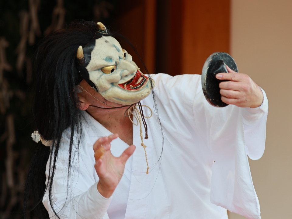 天神(鬼女)の舞 姫が鬼女になった己の姿に驚いている