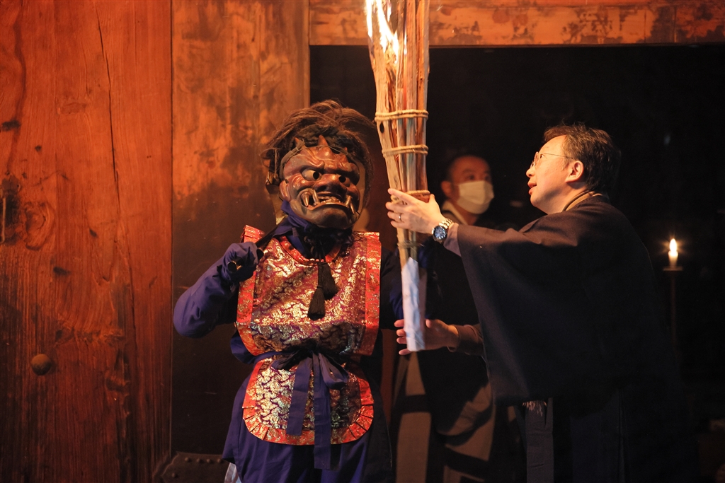 斧などを振り回して暴れたあと松明も渡される
