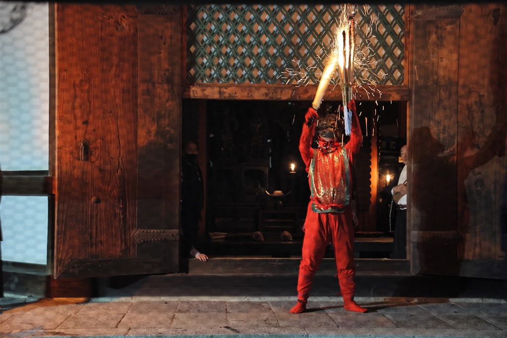 松明を掲げたり振り回したあとは観客のほうに投げつける