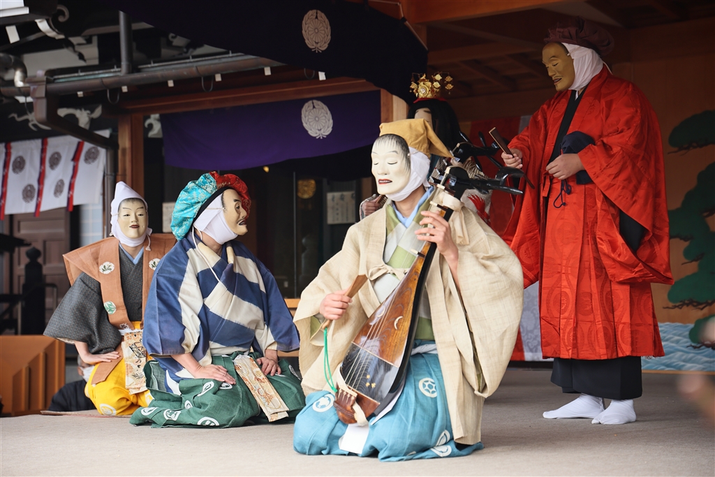 最後の場面では琵琶法師・宿屋の主・弁財天など全員が集まりめでたしめでたし....