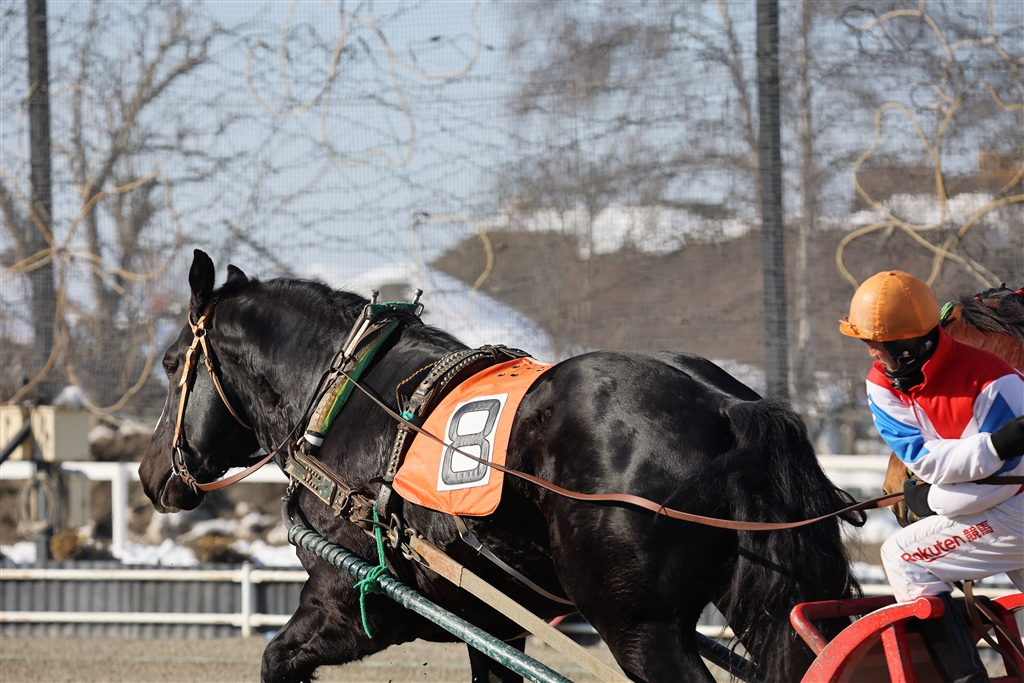 手綱をムチにしてお尻を引っ叩く(黒い毛並みが美しかった)