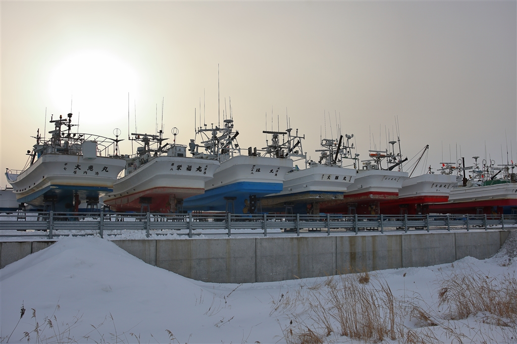 十勝川河口の小さな漁港では漁船を陸にあげてメンテ中でした