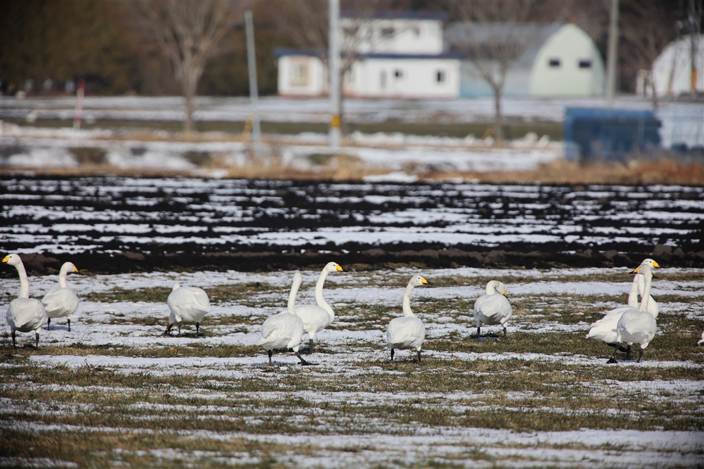 ぬかるむ田畑に足を踏み入れて撮る(@白鳥大橋の近く)