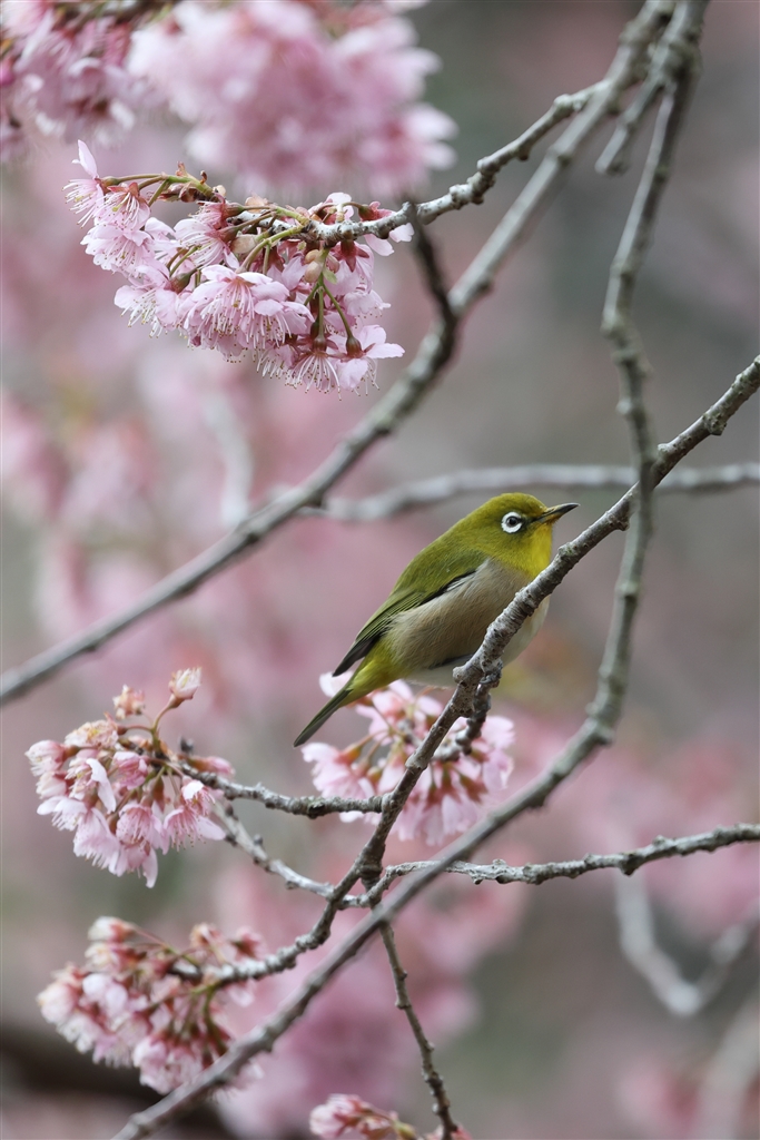 カラミザクラにメジロ