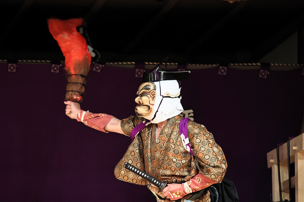 家来が持つ松明の炎は赤い生地がゆらゆらと燃えているように見えました