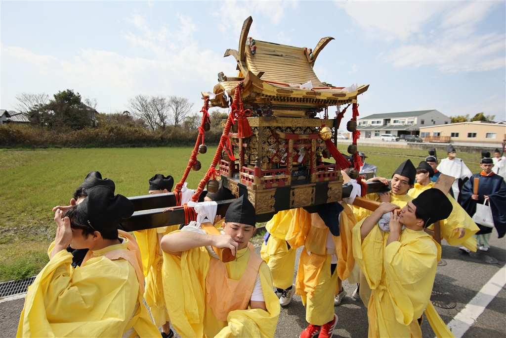 「お渡り」ではお神輿が大和の田園風景の中を進んでいく