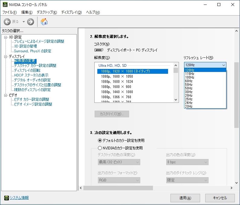144Hz側 PC選択時
